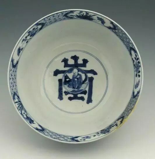 Kangxi blue and white eight-treasure pattern big bowl bottom