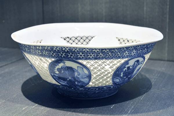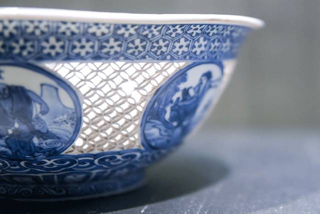 Qing Kang Xi · Qing Hua characters hollowed-out bowls
