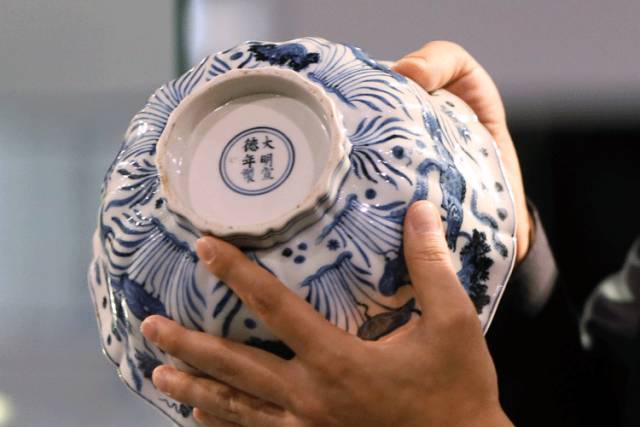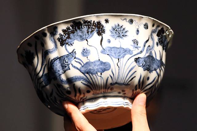 Pictured above is a large bowl of blue-and-white porcelain with algal stripes from Xuande’s time. It is full of poetry and ink.Wonderful in the bowl with ten-petal style, as if the lotus half-opened, breeze, filter out the world’s 3,000 troubles, only a quiet and leisurely.