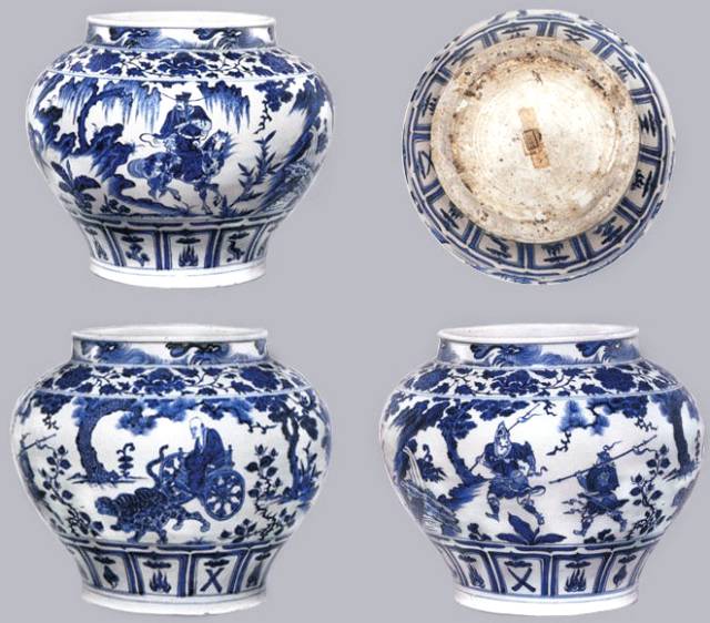 Yuan · Qinghua ghost valley down the hill picture pot