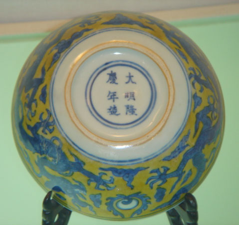 Longqing yellow ground blue-and-white cloud and dragon pattern