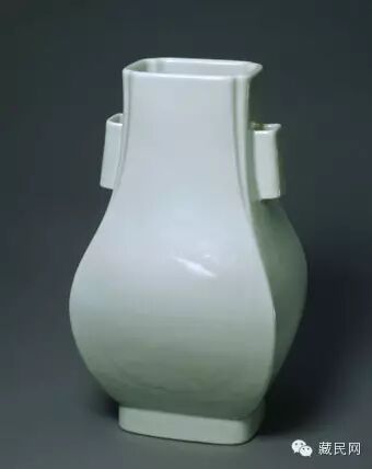 Bottle body square, straight mouth, mouth to the neck of the committee angle, tympanum, square circle foot.East blue glaze was applied in inner and outer body and inside circle foot. Both sides of neck were arranged symmetrically through ears. There were apricot stone protuberance on both sides of abdomen.Six-character double line “Xuantong year of Qing Dynasty” in Qing Dynasty.