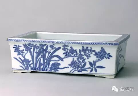 This is the standard style of the late Qing Dynasty flowerpot, the body is thick, the shape is full of primitive simplicity, blue and white gorgeous pan-purple, the pattern arrangement is orderly, is the Xianfeng dynasty blue and white porcelain in the fine.