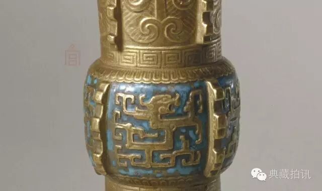 Huagu imitation bronze modelling, each has a halberd on all sides.The body of the instrument is painted with bronze, and the part is decorated with gold color. The body of the instrument is stamped with banana leaf grain and the waist of the device is stamped with Kuiguan dragon pattern.The outer bottom print “the big qing dynasty qianlong year” three lines six character seal book.