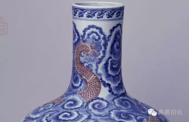 Blue and white glaze, red cloud, dragon pattern, celestial vase