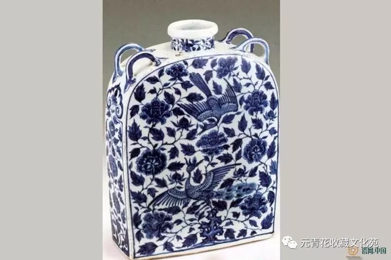 Blue and white phoenix, four-series, flat pot, 36.3 cm high, 26.3 cm long and 9.6 cm wide, Iran National Museum.
